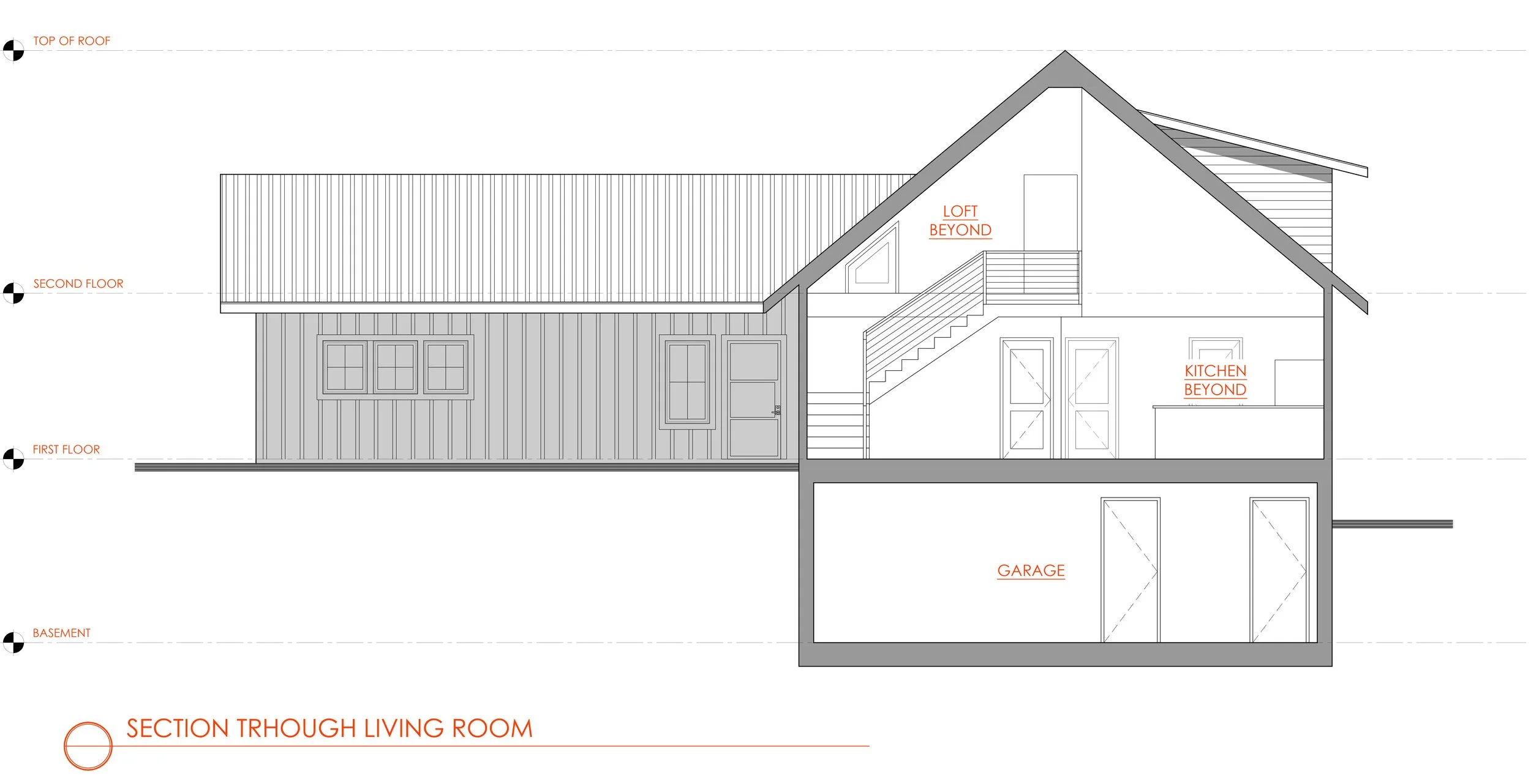 The heart of the project is in the new addition, which features a spacious kitchen, boasting a large refrigerator, double oven and ample counter space. The open-concept living room centers around a fireplace flanked by the two massive windows that are a feature of the house, meant to foster a sensation of being a part of the natural landscape, rather than separated from it.